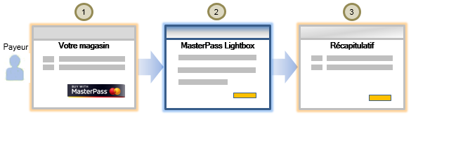 Le diagramme ci-dessous présente un exemple de flux de paiement pour le site de votre magasin et Masterpass.